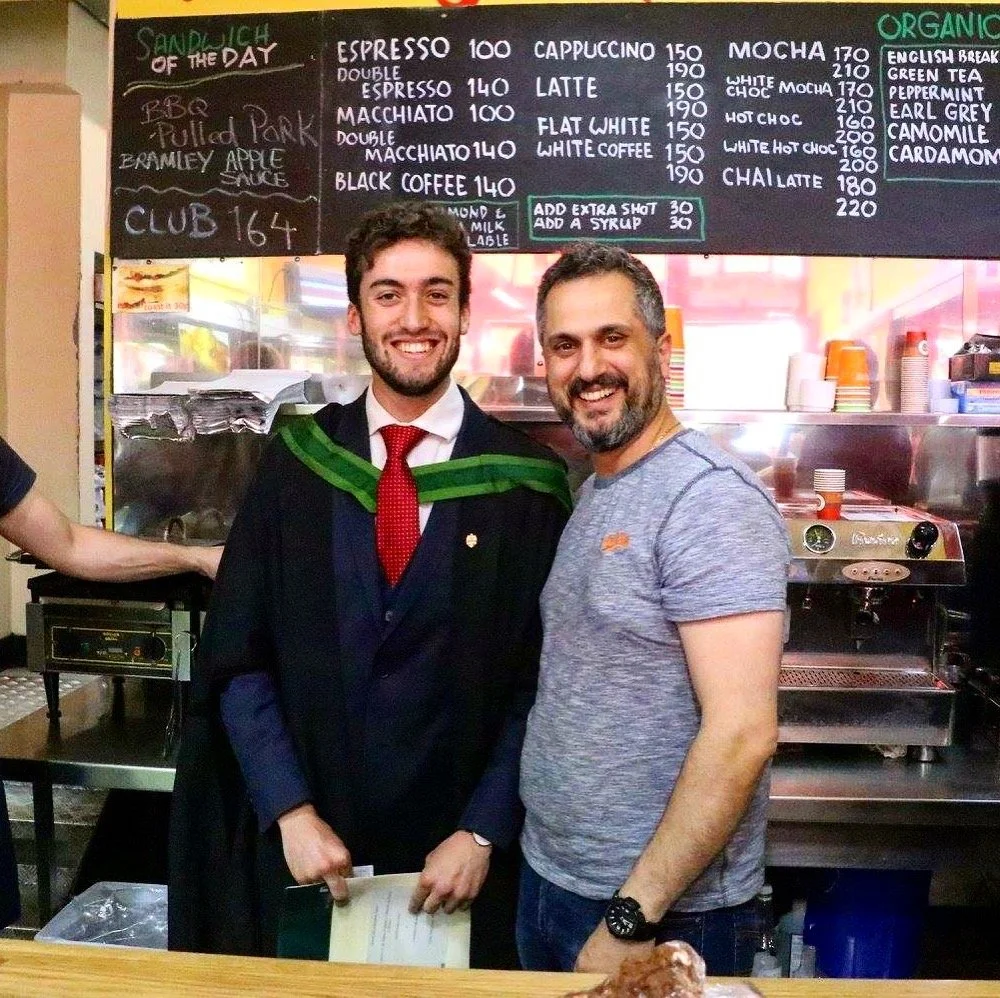 This place was so speical to me that when I graduated I got a photo with the owner before I did my family so make of that what you will. My order: Roast Sweet potato, garlic chicken, smoked bacon and chilli mayo sandwich with a Lemon San Pelligrino and unreal rocky road, sat on the parky steps in the sunshine. Bosh.